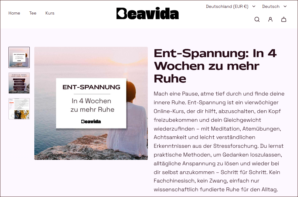 Wenn das für dich gut klingt: auf der Website von Beavida findest du die Registrierung für den Kurs und kanns den Tee bestellen.