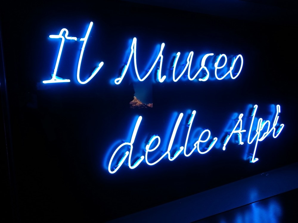 Über vier Schrägaufzüge oder zu Fuß gelangt man zur obersten Etage und betritt einen dunklen Raum mit großen Bildschirmen, auf denen Bergbilder ablaufen. In den folgenden 28 (!) Räumen wandert man durch alle Themen, die die Alpen anzubieten haben, von Dialekten und Bräuchen, von Wetter, Klima und Jahreszeiten, Geologie, Tieren, Blumen, Almstuben und Ställen,von Helden und Heldinnen des Alpinismus und unendlich viel mehr.