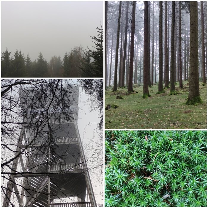Der Göblberg ist mit 801 m die höchste Erhebung des Hausruckwaldes und liegt zwar nicht im Mühlviertel, aber auf dem Weg dorthin. Auch auf dem Göblberg steht ein Aussichtsturm mit 210 Stufen – die Sicht lag leider bei 0, man hat wirklich kaum die Nachbar-Bäume gesehen. Aber manchmal ist es halt so.