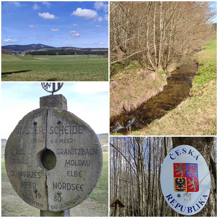 Die Highlights auf der Wanderung in Bad Leonfelden: eine Art Denkmal für die Wasserscheide (auf der einen Seite fließt das Wasser Richtung Moldau – Elbe – Nordsee, auf der anderen Seite Richtung Donau – Schwarzes Meer, ich finde das ja immer sehr faszinierend!), eine Mini-Brücke, über die man nach Tschechien gelangt (südlichster Punkt Tschechiens) und die sogenannte Schwedenschanze, an der eine Art Holzzaun an den 30-jährigen Krieg erinnert. Die ganze Wanderung hat etwa 13 km und 260 hm.