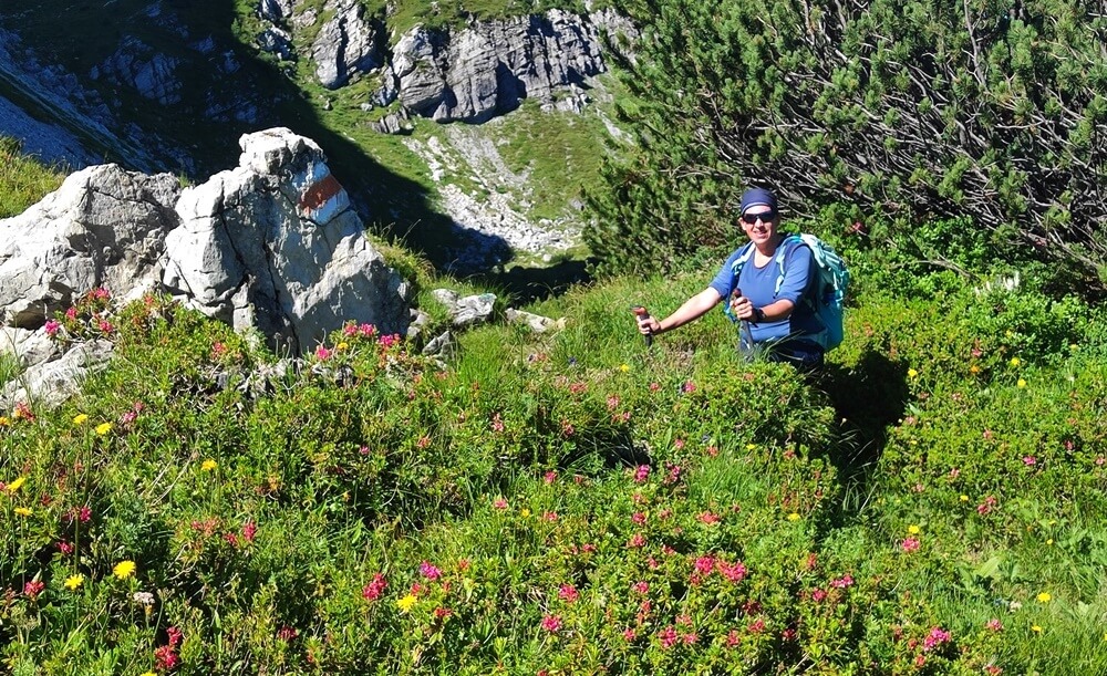 Es ist viel los in diesem Gebiet: Hier fahren auch im Sommer Seilbahnen, es gibt Tretboote auf dem Grünwaldsee, das Beatles Klavier, jede Menge Einkehrmöglichkeiten und Kinderspielstationen. Mit dem Trubel muss man sich abfinden, dann findet man Gefallen an dieses Wanderung mit ca 12 km und 650 hm. Und trotz allem Trubel haben wir im Abstieg minutenlang kleine Murmeltiere vor ihrem Bau beobachten können, die sich überhaupt nicht stören ließen. Ein seltenes, immer wieder unvergessliches Erlebnis.