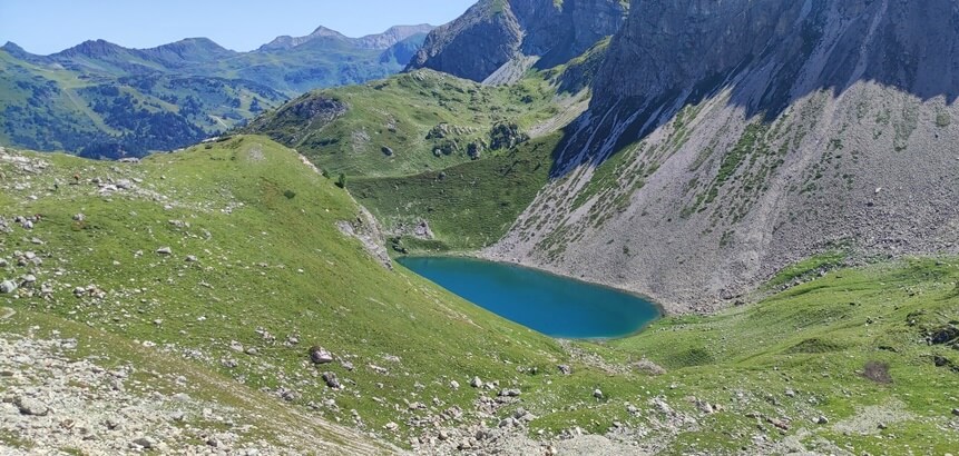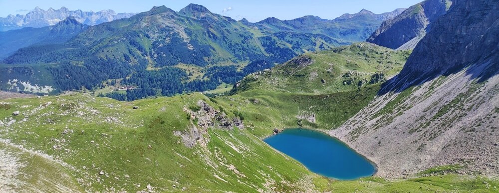 Während es im Juli 2025 fast nur geregnet hat, habe ich den vielleicht besten Tag des Monats auf diesem schönen Berg verbracht und auch dem Weg dahin den wunderschönen Wildsee besucht. Der See liegt auf 1.925 m, inmitten von Wiesen, Felsen und Geröll leuchtet er dunkelblau bis türkis und ist wirklich wunderschön. Kein Kiosk, niemand mit Flip Flop oder mit Stand-Up-Paddle-Board. Hier wird ein Geochache gesucht, fotografiert und gelacht und mehr nicht.